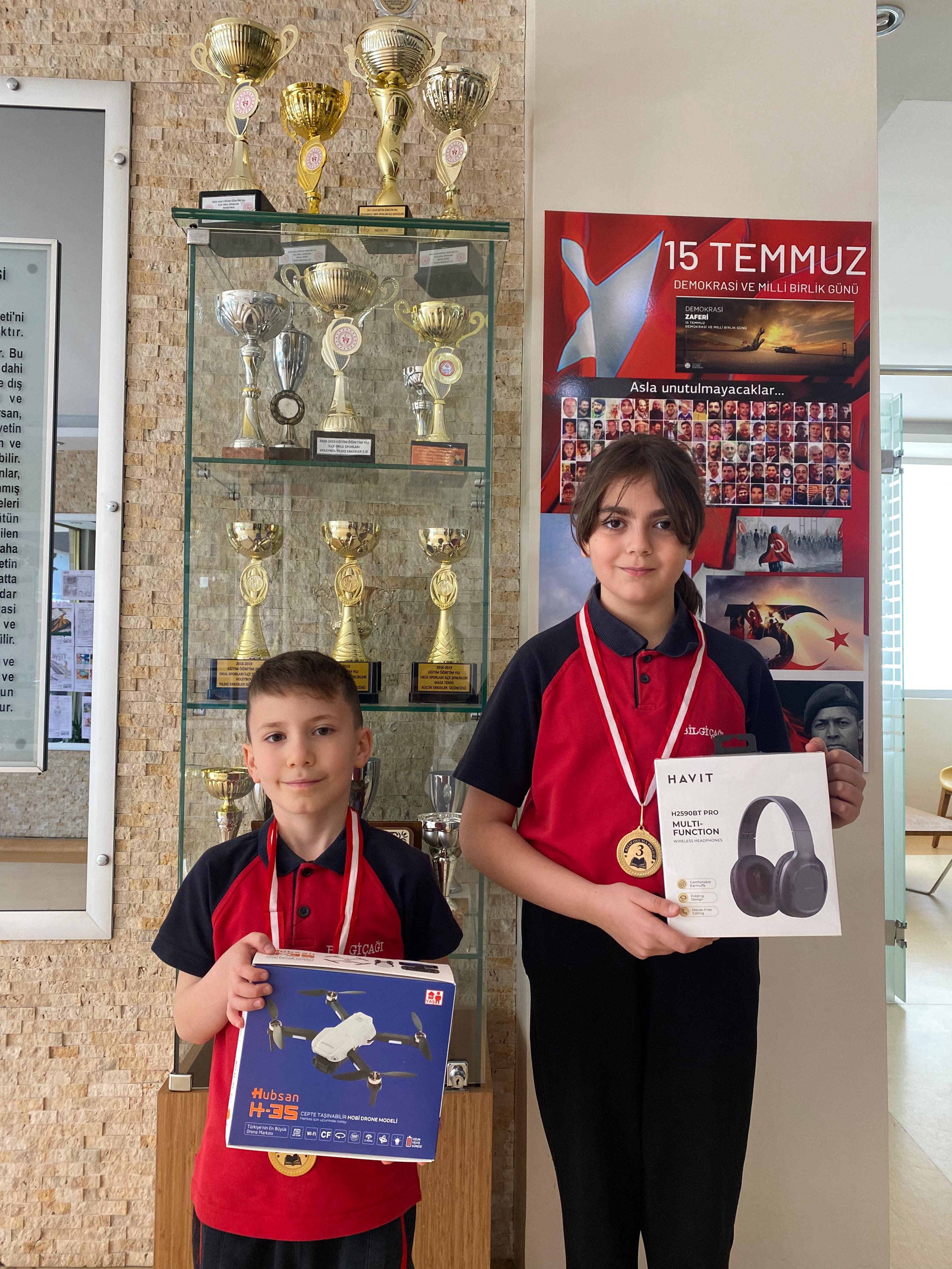 2. sınıf öğrencimiz Talha Hasanusta ilçe 2.si, 4. sınıf öğrencimiz Hümeyra Alan ise ilçe 3.sü oldu!